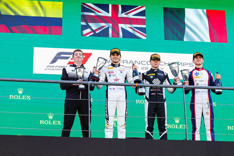 El piloto Claro de Escudería Telmex Telcel, Sebastián Montoya, logró el segundo puesto en la carrera Feature de F3 en Spa para subir al podio. En la Sprint fue quinto.