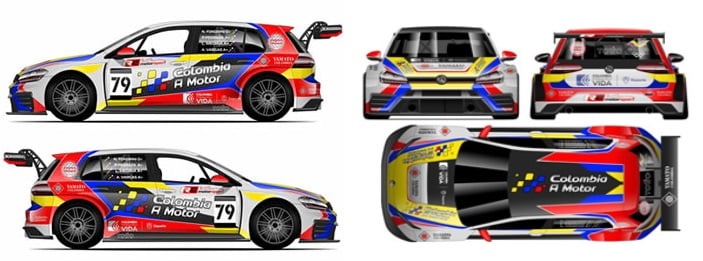 Juan Felipe Pedraza y Lucas Medina, pilotos del Automóvil Club de Colombia, Niko Fondrini, del Club TC 2000, y Marco Andrés Vargas de la Escudería Los Topos de Pasto, serán los cuatro integrantes de Colombia a Motor que unidos buscarán dejar en alto el nombre del país en la importante prueba de resistencia en la que conducirán un auto Volkwgen Golf GTI – TCR Generación 1 de la categoría Top (TC1).