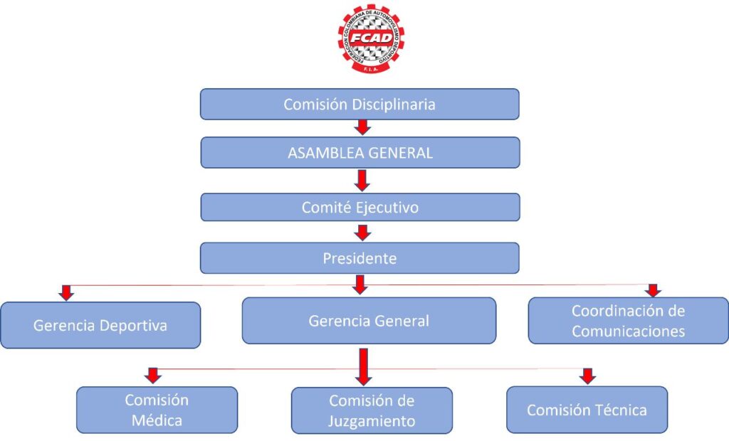 La estructura administrativa de la Federación Colombiana de Automovilismo Deportivo-FCAD está conformada de la siguiente manera: